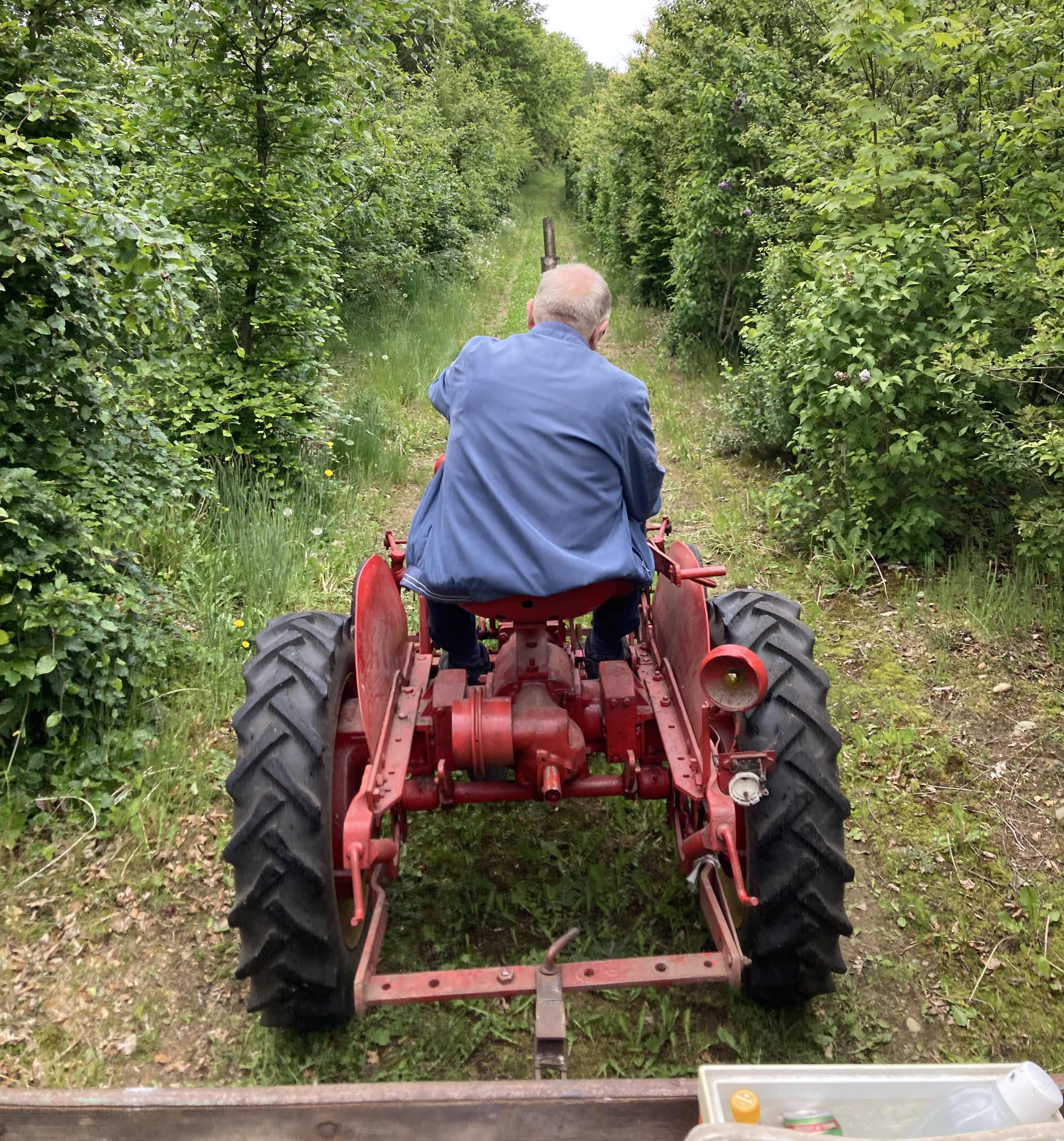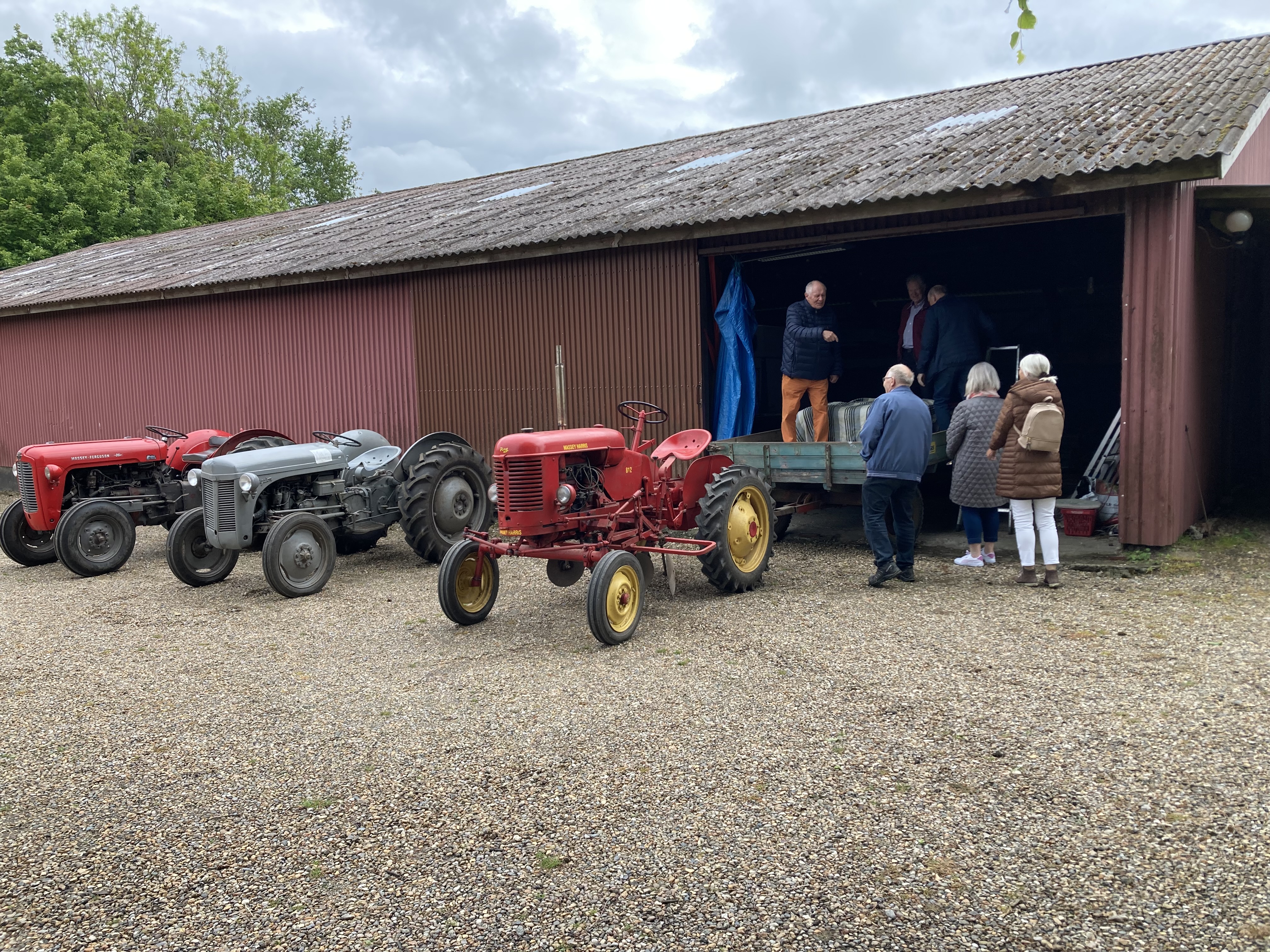 og klipper. Han har også tre gamle traktorer, og den ene stod med en